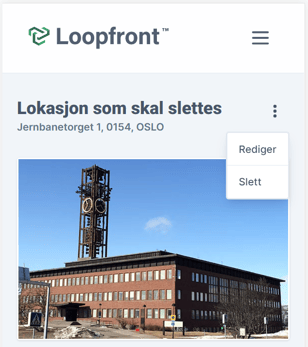 Hvis du ønsker å redigere informasjon om en lokasjon, gå til lokasjonen og velg Rediger via menyen øverst til høyre: