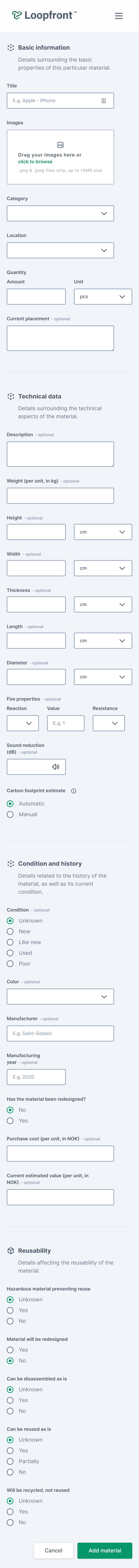När du har fyllt i relevant information klicka "Lägg till material" längst ner på skärmen.
